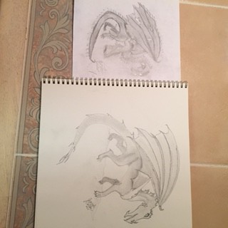 So I broke out the drawing pencils, and we called up a YouTube video tutorial on drawing dragons.