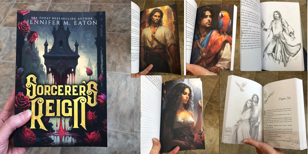 The Sorcerer’s Reign Limited Edition paperbacks feature gorgeous full-spread art sepia chapter starts, 10 full color art pages, and a hand-drawn exclusive image. Shipping to the USA Included. Outside the USA additional shipping will be billed separately once your shipping is calculated. Original Kickstarter price $39 (Including shipping to USA) Limited time sale!