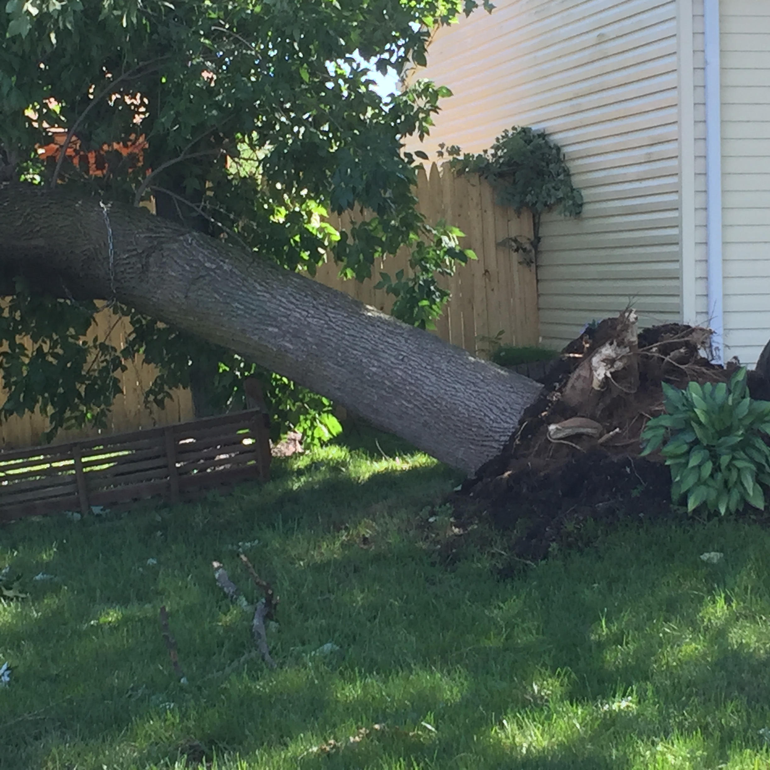 Later in the day we got grandma back to our house (she is fine) and I took the kids to walk the neighborhood. We had a battery radio, and all we found out was that the storm was localized, and they were trying to confirm it was a tornado. Walking the streets, seeing huge trees on the ground, poles snapped in two, mangled trampolines 1000 feet from where they were the previous day, and power lines just laying on the ground… well, there was just no doubt in our mind what had happened, even though they gave the storm a new category type… not a tornado, something about concentrated horizontal wind shears or something like that.