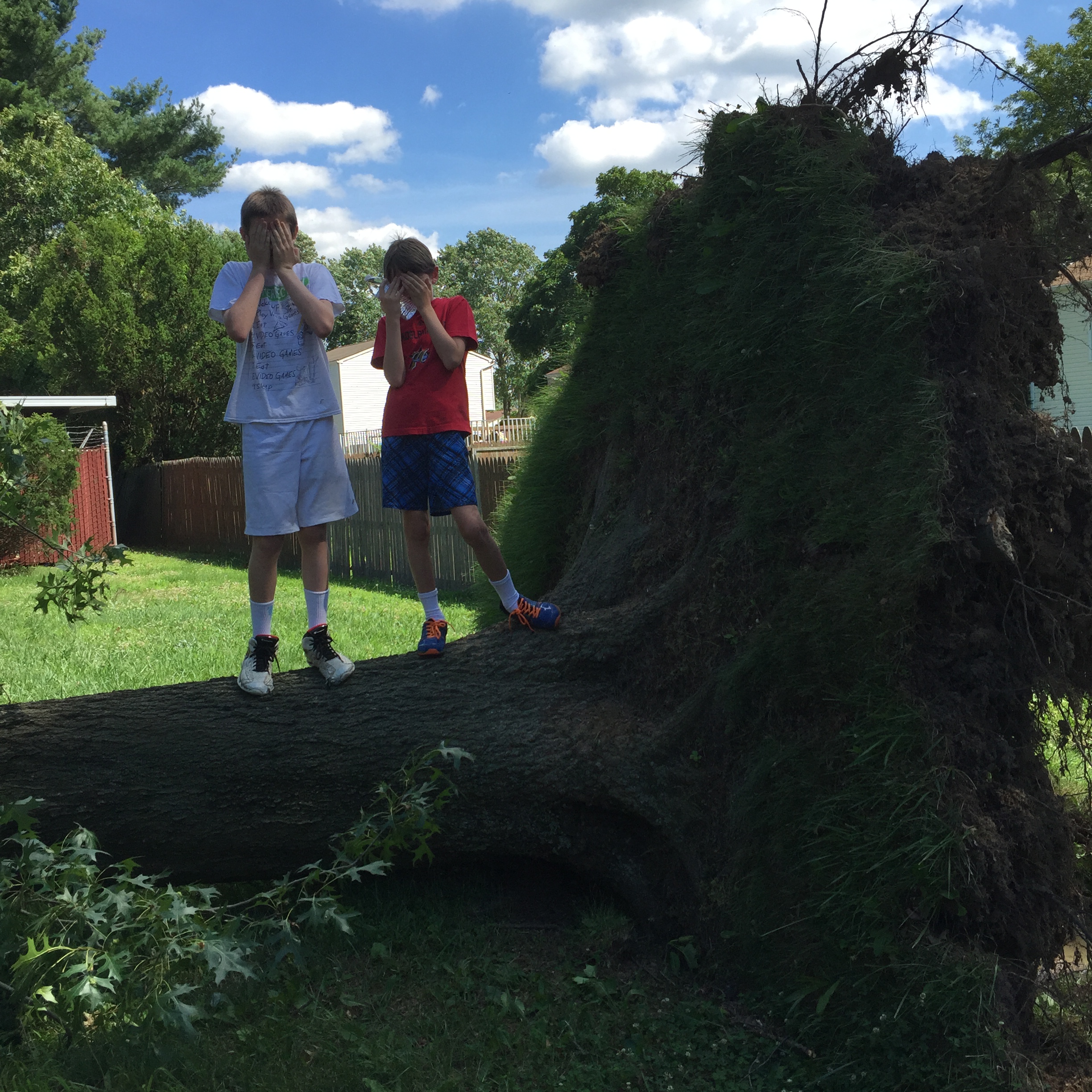 That’s when something from my neighbor’s yard set sail, came over our six foot fence, and flew past our house. I can’t tell you what it was. I don’t rightly remember. My oldest son said, “Is this a tornado?”